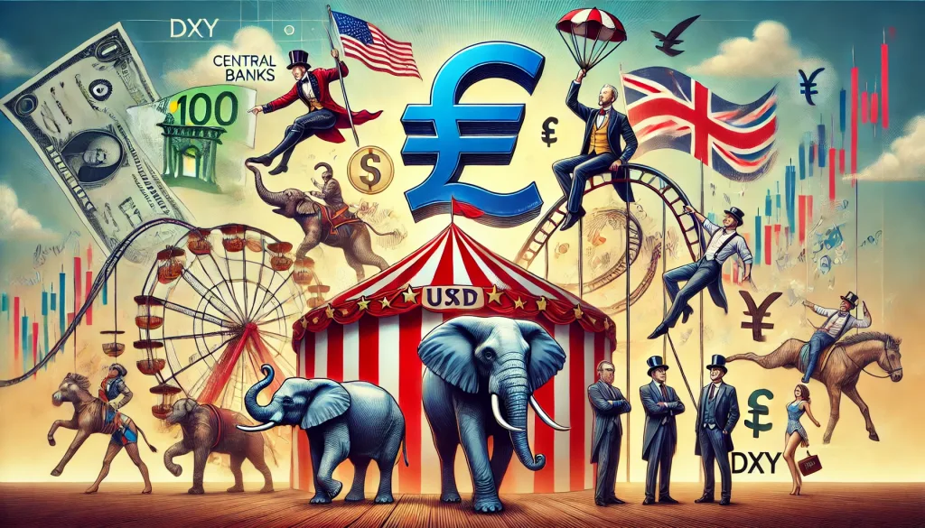 What a week, folks! The Forex market has been putting on quite the circus show—elephants on one side, trapeze artists on the other, and plenty of clowns doing flips just to keep us guessing. The USD has decided to share a little love after skyrocketing like a firework during the Trump victory announcement. The DXY index, which measures the U.S. dollar against a basket of currencies, had one heck of a ride from 103.70 to 105.44. It’s the kind of move that gets you holding onto your hat—or your currency pairs—like a cowboy in a rodeo. Today, however, attention turns to the Federal Open Market Committee (FOMC) and their next potential trick—a 25bps rate cut cadence that has got everyone trying to peek behind the curtain. But let’s take this step by step, starting with our main players.